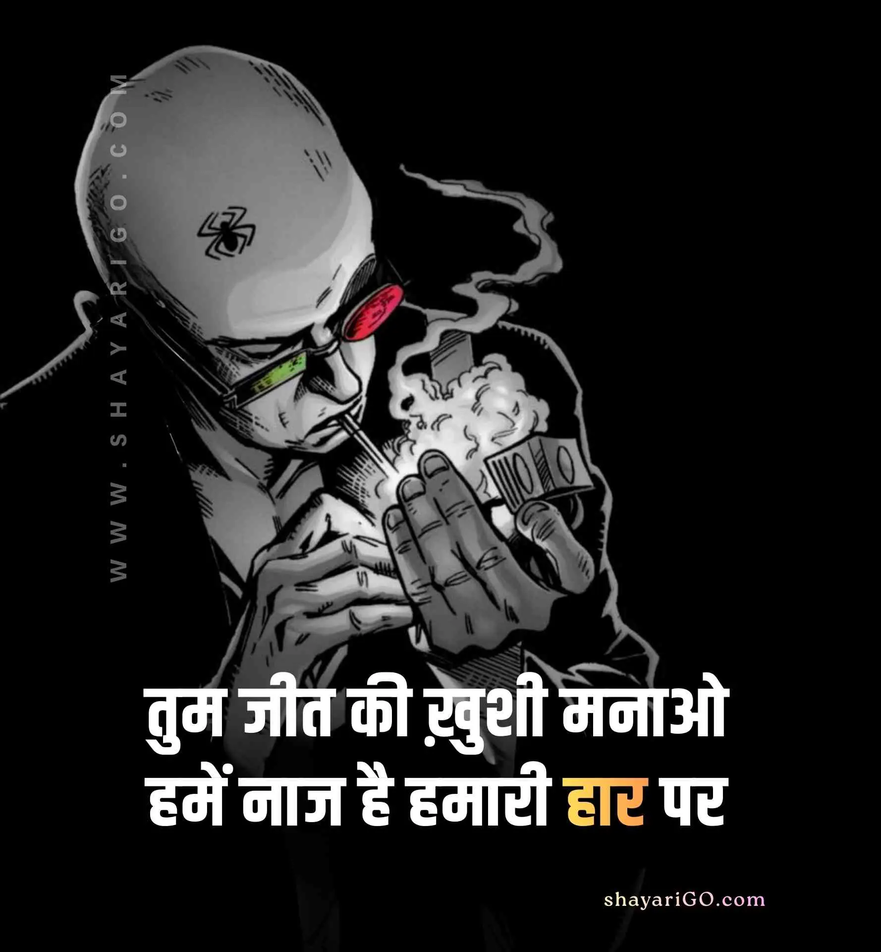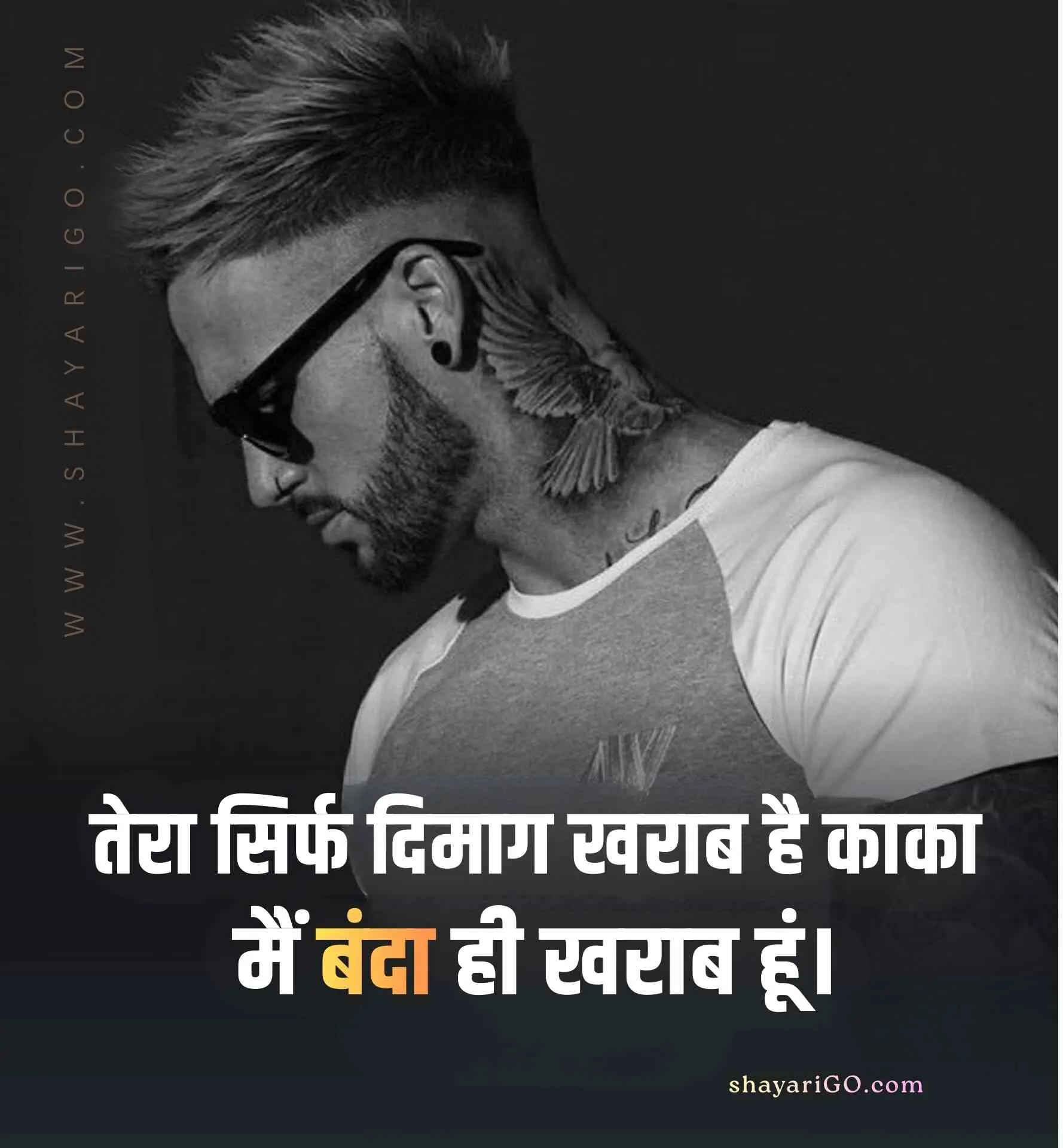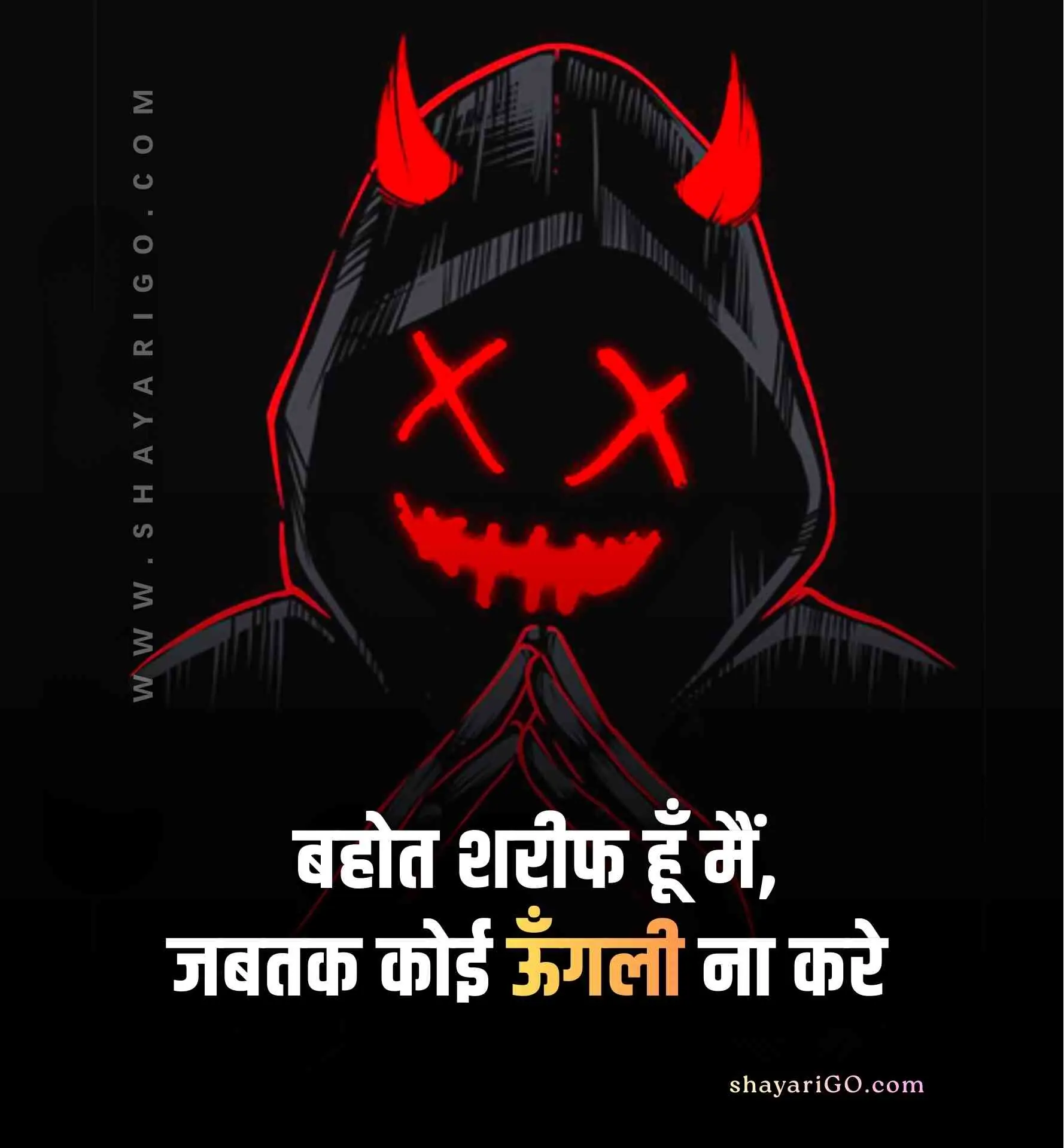 यहाँ आप बहुत ही आसानी से फ्री में हाई क्वालिटी Attitude Shayari & Status इमेज को डाउनलोड कर सकते हैं और कहीं भी शेयर कर सकते हैं। तो बिना समय व्यर्थ किये अभी पढ़ना शुरू कीजिये और लगाईये अपने सोशल मीडिया एकाउंट्स पर स्टेटस; कैप्शन में डालिये इन 2 line status को और अपने दोस्तों को भी दिखाइए। अगर आपको हमारी पोस्ट पसंद आये तो इसे अपने Facebook, Instagram और WhatsApp पर भी शेयर कीजिये।