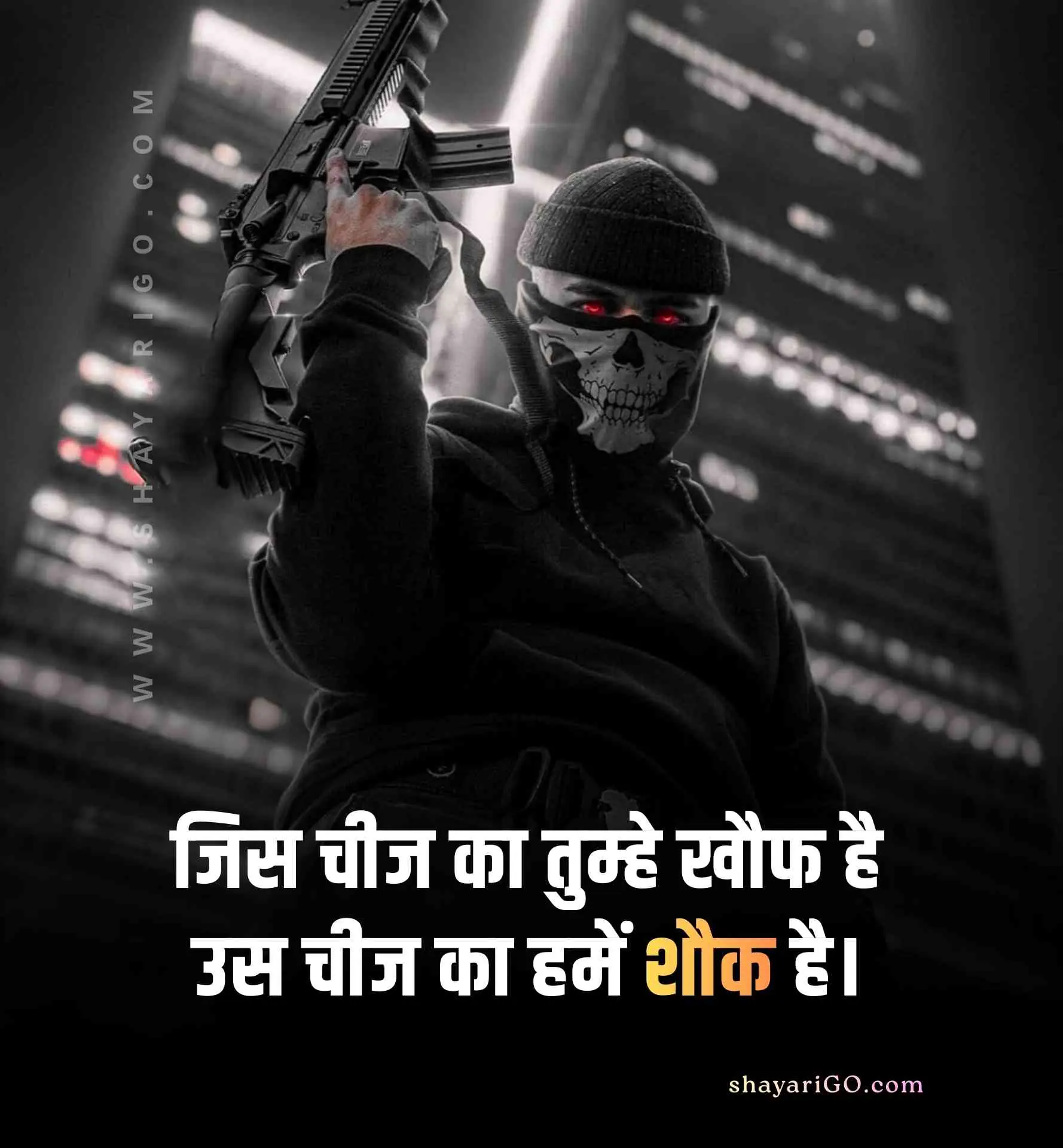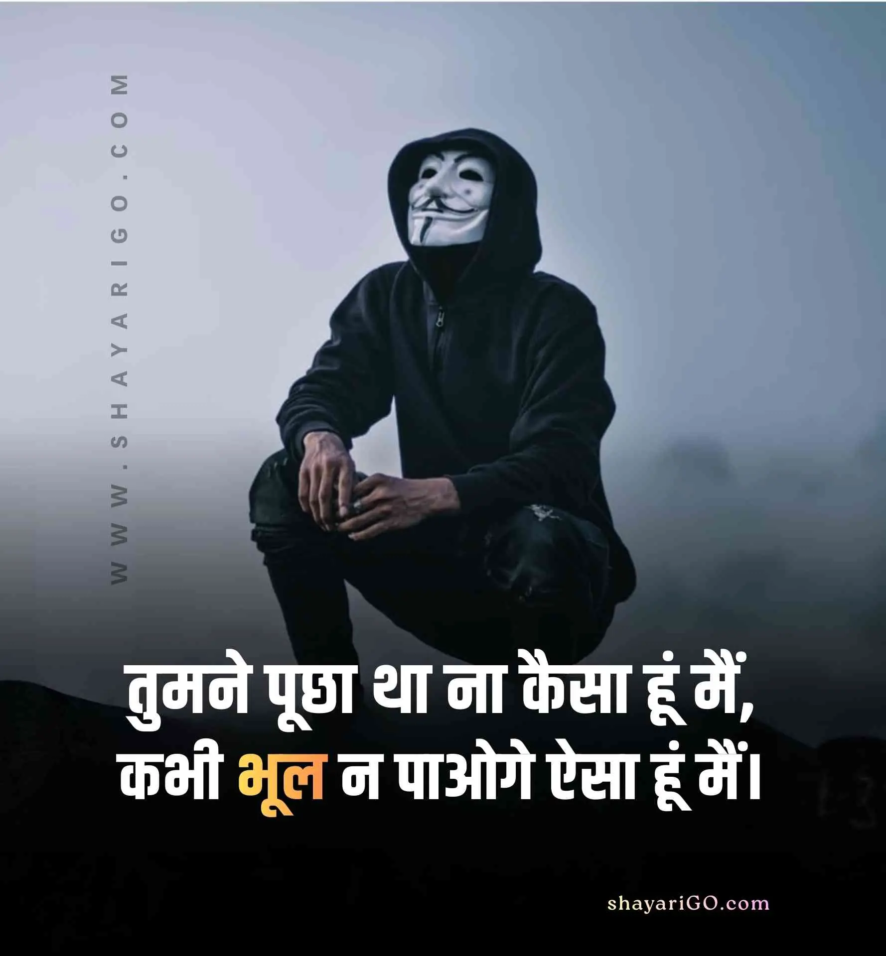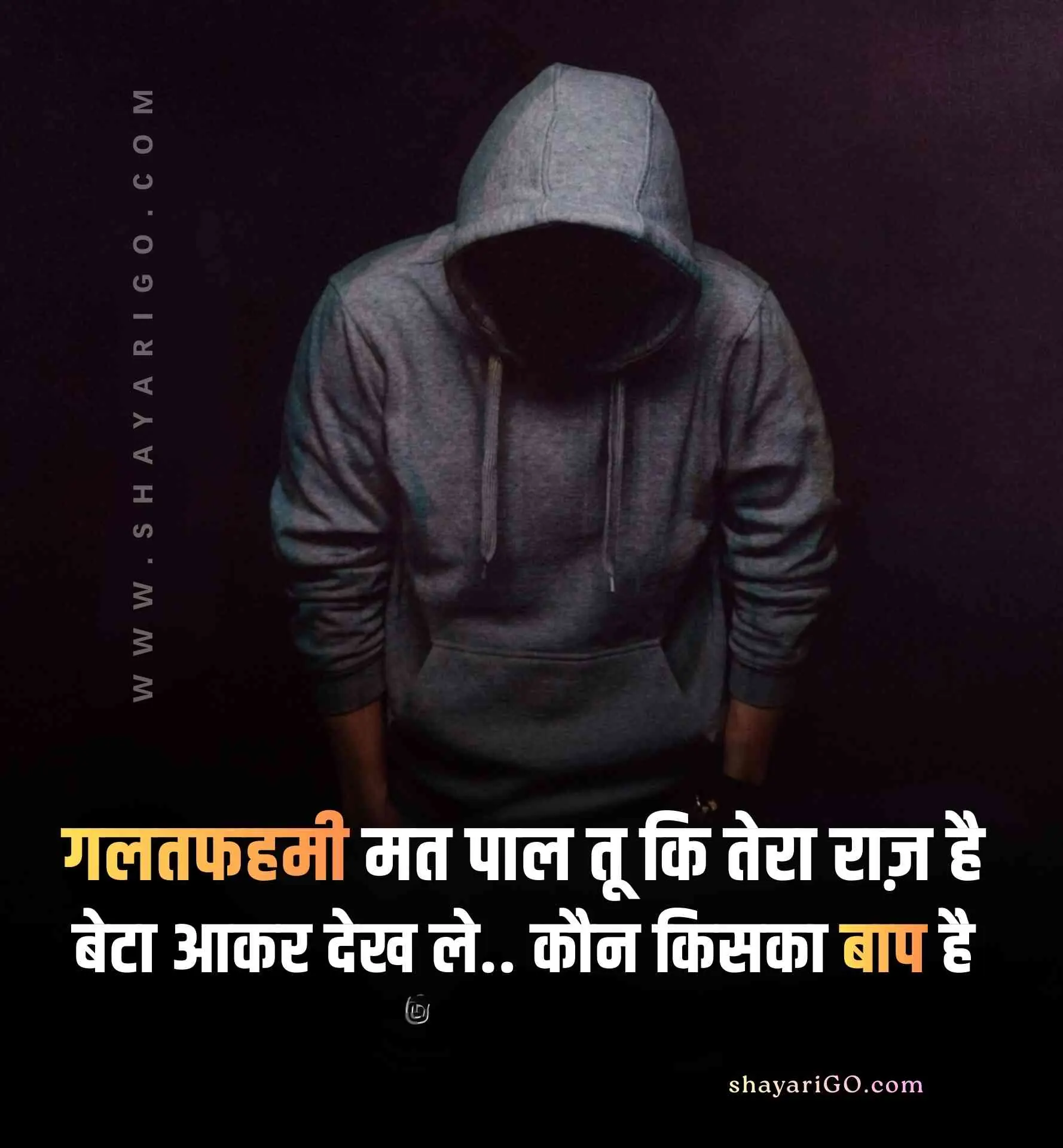 यहाँ आप बहुत ही आसानी से फ्री में हाई क्वालिटी Attitude Shayari & Status इमेज को डाउनलोड कर सकते हैं और कहीं भी शेयर कर सकते हैं। तो बिना समय व्यर्थ किये अभी पढ़ना शुरू कीजिये और लगाईये अपने सोशल मीडिया एकाउंट्स पर स्टेटस; कैप्शन में डालिये इन 2 line status को और अपने दोस्तों को भी दिखाइए। अगर आपको हमारी पोस्ट पसंद आये तो इसे अपने Facebook, Instagram और WhatsApp पर भी शेयर कीजिये।
